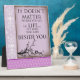 We recently lost our dog Tye after 13 years and have all been heartbroken. When he returned home i wanted something to go next to his ashes/urn and i came across this plaque. I am so happy with it and it is made so well looks lovely and makes me smile when i see it/aswell as shed a tear. Excellent, so happy with it, exactly how i wanted it to look.
