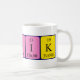 Besnik spelled out as B Es N I K (Boron Einsteinium Nitrogen Iodine Potassium) on a mug for the scientist in you.