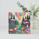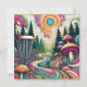 Wishing you the best birthday by par. Disc golf themed birthday card for her. A unique colourful disc golf course in a field of retro mushrooms, pine trees, colourful swirling cloud, sunshine in vintage colours like blue, green, pink and orange.