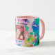 The perfect birthday present for her! A special keepsake mug with her photo on it, and 2 greeting text messages to custom. This unique and happy birthday theme mug has a festive colourful abstract bokeh design, with colourful bubbles on a light pinkish background. The mug has rim & handle vividly glazed in rich pink colour. Why not celebrating your special birthday event with a festive colourful design that will amaze your guests? This pretty mug has 2 customizeable text messages that can easily be personalised with your own bespoke birthday message, to fit your special occasion. You can change the name, add the age, greeting, your favourite quote, etc. This beautiful birthday mug is ideal for Birthday party, Birthday milestone, Anniversary celebration, Holiday party, or any other special occasion. All you need to do is to personalise it according to your special occasion.