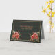 An elegant birthday card with beautiful red Peonies floral, surrounded by a gold frame on the Province of Ontario Tartan.