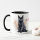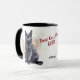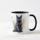 This is a cute mug for the best cat Mum. A pretty portrait of a black cat is printed twice on the mug. Behind the cat is a splash of abstract gold star confetti. Between the images is red text that says "Best Cat Mum EVER". Her name is at the bottom between them. The text is in custom fields, so you may change this for a Cat Dad, too!