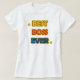 Shirt met de tekst: Beste baas ooit! Leuk als cadeau voor de beste werkgever de wereld. Kleuren: geel, oranje en blauw. Met een gele ster in de kleur geel.