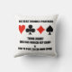Are you a serious bridge player? Do you play with serious bridge partners? Showcase your wry bridge / duplicate bridge attitude with this throw pillow featuring the four card suits along with the following truism saying: "The Best Bridge Partners Think About Who Has Which Key Cards And How To Play Their Own Cards". Do a double-take on who the best bridge partners are with this bridge saying throw pillow!