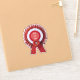 A colourful sticker, cut to shape, featuring a red and white rosette with 'Best Cat Dad' accolade.