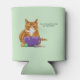 Orange tabby cat with toys and a purple coffee mug declaring they have the most perfect cat Dad ever!
