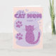 A Mother's Day greeting card for women who love cats . It has the silhouette of a cat and paw prints both made out of purple leopard texture . The text reads "Best Cat Mum Ever !" You can modify the greeting on the inside of the card to fit the celebration (Mother's Day , birthday , etc) .