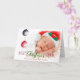 Your Baby's Photo (light photos work the best to allow text to show) full front will sit behind the modern calligraphy in green and red that says ' Best Christmas Ever ' and hand drawn stippled ornaments in red, white and black - and a place under to add the introduction of this new family member to those you send cards to - inside a sentiment that you can keep or change or remove completely and write your own at home.