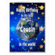Celebrate your cousin with a cosmic twist! This card features a breathtaking view of Earth from space, with the heartfelt message, "Happy Birthday to the best cousin in the world." A perfect way to show how much he means to you—no matter the distance, he’s always your number one.