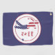 NewParkLane - Golf Golf Towel, with a little golf player in silhouette coloured with the stars and stripes of the American Flag, and a funny quote 'Best Dad by Par', in red typography, against a navy blue background. A great all American birthday or Father's Day gift for any dad who loves playing golf !