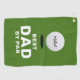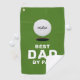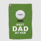 Looking for the perfect Father's Day gift? Cue our personalised golf towel. This isn't just any golf towel, it's a tribute to your one-of-a-kind Dad. Featuring a vibrant green backdrop, a uniquely customised golf ball with his name and initial, and a witty play on words, 'Best Dad by Par'. It's a hole-in-one gift for the golf enthusiast and ultimate Dad joke appreciator.