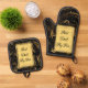 Best Dad By Par Modern Calligraphy Leafy Swirl Fun Oven Mitt & Pot Holder Set