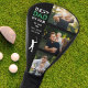 Cool Custom Father's Day gift for the Best Dad Ever. Modern distressed typography message reading BEST DAD BY PAR as well as a personalised message next to a collage of 3 family photos make this golf head cover a keepsake gift he'll love to show off on the course.