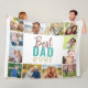 Best Dad Ever 12 Photo Collage Teal White Fleece Blanket