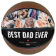 Turn your favourite family memories into a meaningful gift for Dad with the Personalised Father's Day Basketball Keepsake. This unique and customisable keepsake will be a meaningful reminder of your love and appreciation. Featuring a photo collage of 12 family pictures for you to replace with your own, the saying "BEST DAD EVER" in a white bold font, a red heart, the childrens names, and the year.