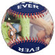 Best Dad Ever Custom Photo Personalised Name Softball features two of your favourite photos with the text "Best Dad Ever" in modern white script and your custom text in the centre on a blue background. Personalised by editing the text in the text boxes provided and adding your photos. PHOTO TIP: edit your photos prior to uploading to Zazzle with the subject in the centred. Designed by ©Evco Studio www.zazzle.com/store/evcostudio