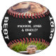 Best Dad Ever Custom Photo Personalised Name Softball features two of your favourite photos with the text "Best Dad Ever" in modern white script and your custom text in the centre on a black background. Personalised by editing the text in the text boxes provided and adding your photos. PHOTO TIP: edit your photos prior to uploading to Zazzle with the subject in the centred. Designed by ©Evco Studio www.zazzle.com/store/evcostudio