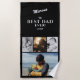 Best Dad Ever Father`s Day Keepsake 4 Photo Black Beach Towel. The background is black. Personalise with four photos, dad`s name and the year. You can change any text on the towel. A perfect gift for a dad, a new dad or grandpa on Father`s Day.