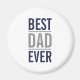 This magnet features phrase "Best Dad Ever" in navy blue and grey modern bold sans serif font style on white background.