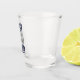 This shot glass features phrase "Best Dad Ever" in navy blue and grey modern bold sans serif font style.