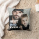 Throw pillow featuring your custom photos and the text "Best dad ever" as a white and light blue overlay in the bottom left corner.