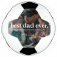 Modern fathers day soccerball gift featuring a family photo for you to replace with your own, the saying "best dad ever.", a personalised thank you note, a cute red heart, and your childrens names.