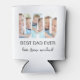 This father's gift can cooler features three photos in the shape of the letters "DAD" along with the inscription "Best Dad Ever."