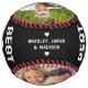 Best Dad Ever Photo Personalised Name Custom Softballs features two of your favourite photos with the text "Best Dad Ever" in modern white script and your custom text in the centre. Personalised by editing the text in the text boxes provided and adding your photos. PHOTO TIP: edit your photos prior to uploading to Zazzle with the subject in the centred. Designed by ©Evco Studio www.zazzle.com/store/evcostudio