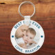 Create a personalised photo keychain for a father with the editable title BEST DAD EVER and your custom text in in a teal blue colour against a white background. PHOTO TIP: Choose a photo with the subject in the middle and/or pre-crop it to a square shape BEFORE uploading and use the CROP tool in the PERSONALIZE section to adjust your image within the template area. ASSISTANCE: For help with design modification or personalisation, colour change or transferring the design to another product, contact the designer BEFORE ORDERING via the Zazzle Chat MESSAGE tab below or email makeitaboutyoustore@gmail.com.