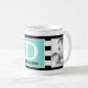 Happy Father's Day! Modern Best Dad Ever Coffee Mug. With Black and White Stripes and a personalised Robin's Egg Blue Monogram. Add 2 Photos!
