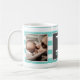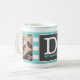 Happy Father's Day! Modern Best Dad Ever Coffee Mug. With Robin's Egg Blue and White Stripes and a personalised Monogram. Add 2 Photos!