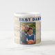 Best Dad Ever Wood 3 Photo Collage Father Giant Coffee Mug. This mug has 3 photos, modern and trendy bold typography, names and year. The pictures and the text are on the background with bright wood. Add your names, 3 photos and the year. Make a lovely and unique keepsake for father for Father's day, Christmas or birthday.