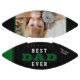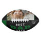 Best Dad Father Green Black Photo Keepsake Football. Add your photo and names. The text is modern white and green typography on a black with green stripes. Sweet keepsake for a dad.