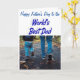 Father's Day greetings card with World's Best Dad in 3D blue text and your photo. Customise your text inside the card for a personal touch.