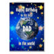 Celebrate your dad with a cosmic twist! This card features a breathtaking view of Earth from space, with the heartfelt message, "Happy Birthday to the best dad in the world." A perfect way to show how much he means to you—no matter the distance, he’s always your number one.