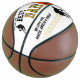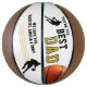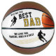 Modern Best Dad Player Silhouette Father Keepsake Basketball. This personalised basketball featuring black, gold and orange colour scheme, bold lettering, realistic basketball graphics, this sporty design is perfect for any dad basketball fan. The design showcases dynamic player silhouettes, a basketball image and stripe details. Add your names and make a great Father's day or birthday gift for dad.