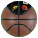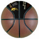 Modern Best Dad Player Silhouette Father Keepsake Basketball. This personalised basketball featuring black, gold and orange colour scheme, bold lettering, realistic basketball graphics, this sporty design is perfect for any dad basketball fan. The design showcases dynamic player silhouettes, a basketball image and stripe details. Add your names and make a great Father's day or birthday gift for dad.