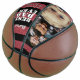 Best Dad Ever Red Leather Print 2 Photo Father`s Day Basketball. Modern and unique red stripe leather print pattern in red colour. Make a special basketball ball for the best dad ever. Add your favourite 2 photos and add your names. Sweet keepsake and Father`s day gift for father.