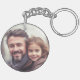 Keychain featuring the text "Best daddy ever" in a retro font surrounded by white stars. On the back is a customisable photo template. Default colours are black and white but all colours can be customised in the design tool.