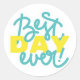 BEST DAY EVER BLUE AND YELLOW CLASSIC ROUND STICKER