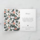 Elegant and simple black typography, wedding photo thank you card. Front of card features single photo and two lines for custom text. Inside of card features modern painted tropical foliage and coral pink floral pattern with custom message.