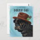 Cute dog theme father's day or birthday card featuring hand painted illustration of a pug puppy wearing a brown fedora hat. The text at the top says "you are the best doggie dad."