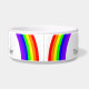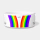Dog food bowl with name and "Best Dog Ever" has a rainbow design ona white bowl; HAMbyWhiteGlove.