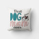 This cute pillow features a lovely sleeping spotted puppy with the wording "Best dog mum ever" in teal, black, and pink modern fonts.