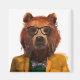 This design features a portrait of dressed bear in glasses and a jacket.