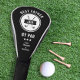 Enhance your father's golf gear with our Customised Golf Club Head Cover. Featuring two crossed golf clubs on a crisp white circle background, this head cover is accented by an additional white ring. A matching ribbon on the crossed clubs displays your choice of two or three of your father’s initials in elegant white lettering. The phrase “Best Dad By Par” is prominently displayed above and below the clubs, with three stars and a customisable area for adding names in white. ⛳