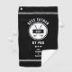 Elevate your golfing experience with our Customised Golf Towel. This unique design features two crossed golf clubs set against a crisp white circle, encircled by an elegant white accent ring. A matching ribbon on the clubs displays your choice of two or three of your dad’s initials in sophisticated white lettering. The phrase “Best Father By Par” is prominently displayed above and below the clubs, accompanied by three stars and a customisable area for adding names in white.