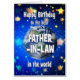 Celebrate your father-in-law with a cosmic twist! This card features a breathtaking view of Earth from space, with the heartfelt message, "Happy Birthday to the best father-in-law in the world." A perfect way to show how much he means to you—no matter the distance, he’s always your number one.