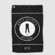 This bold black golf towel features a strong male golfer silhouette framed inside a crisp black‑and‑white emblem with curved text reading “Best Fiance By Par!”. A simple template allows you to personalise the design with a monogrammed name, initials, or short custom text. The solid black background keeps the look clean, modern, and masculine.