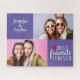 Create a unique and modern puzzle to celebrate friendship with your BFF (best friend forever) and customize it by adding your names and two of your favorite pictures with a trendy "Best Friend Forever" lettering overlay with a pink heart on a modern purple background.